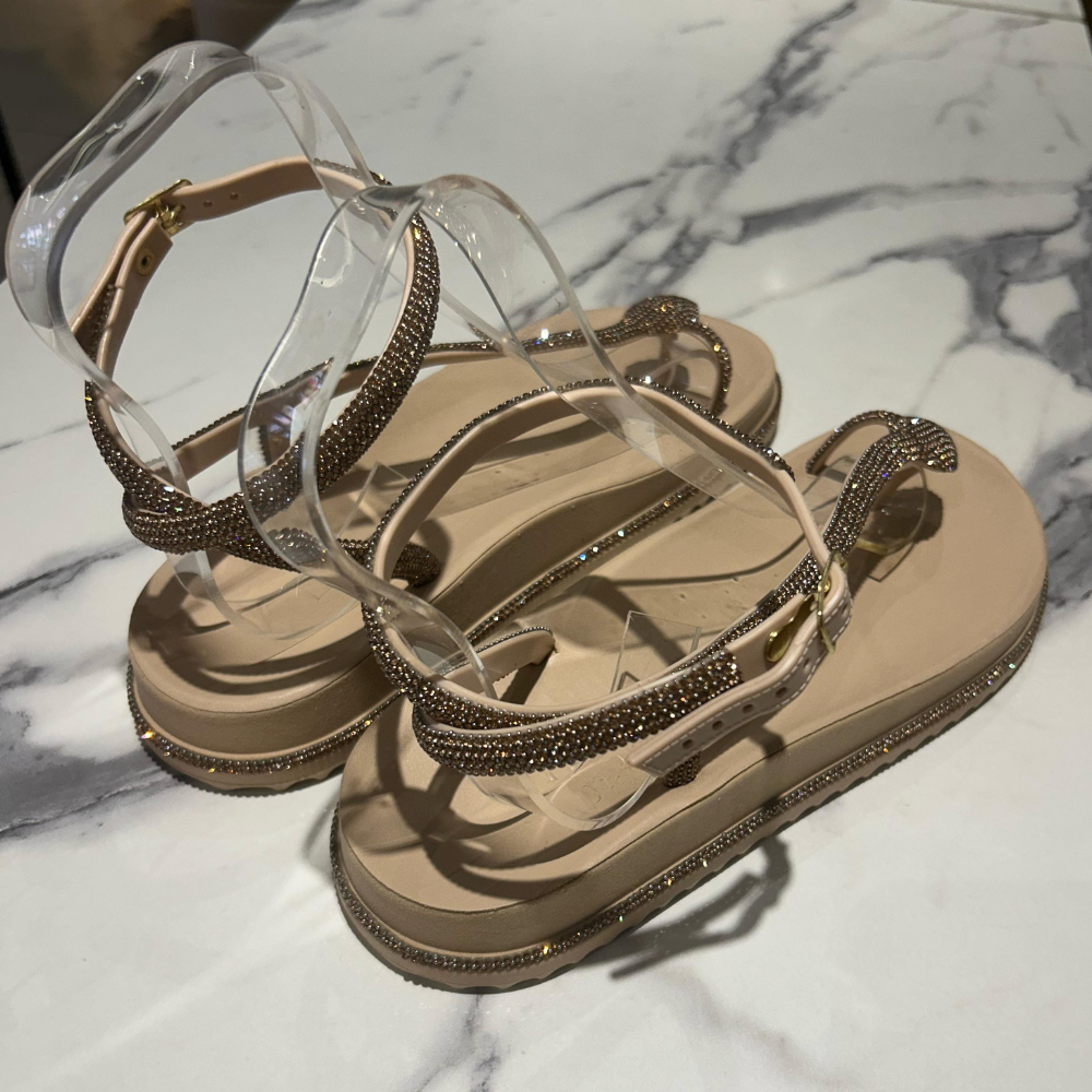 Papete cobra com detalhes em strass. Disponível nas cores off, nude e rose.